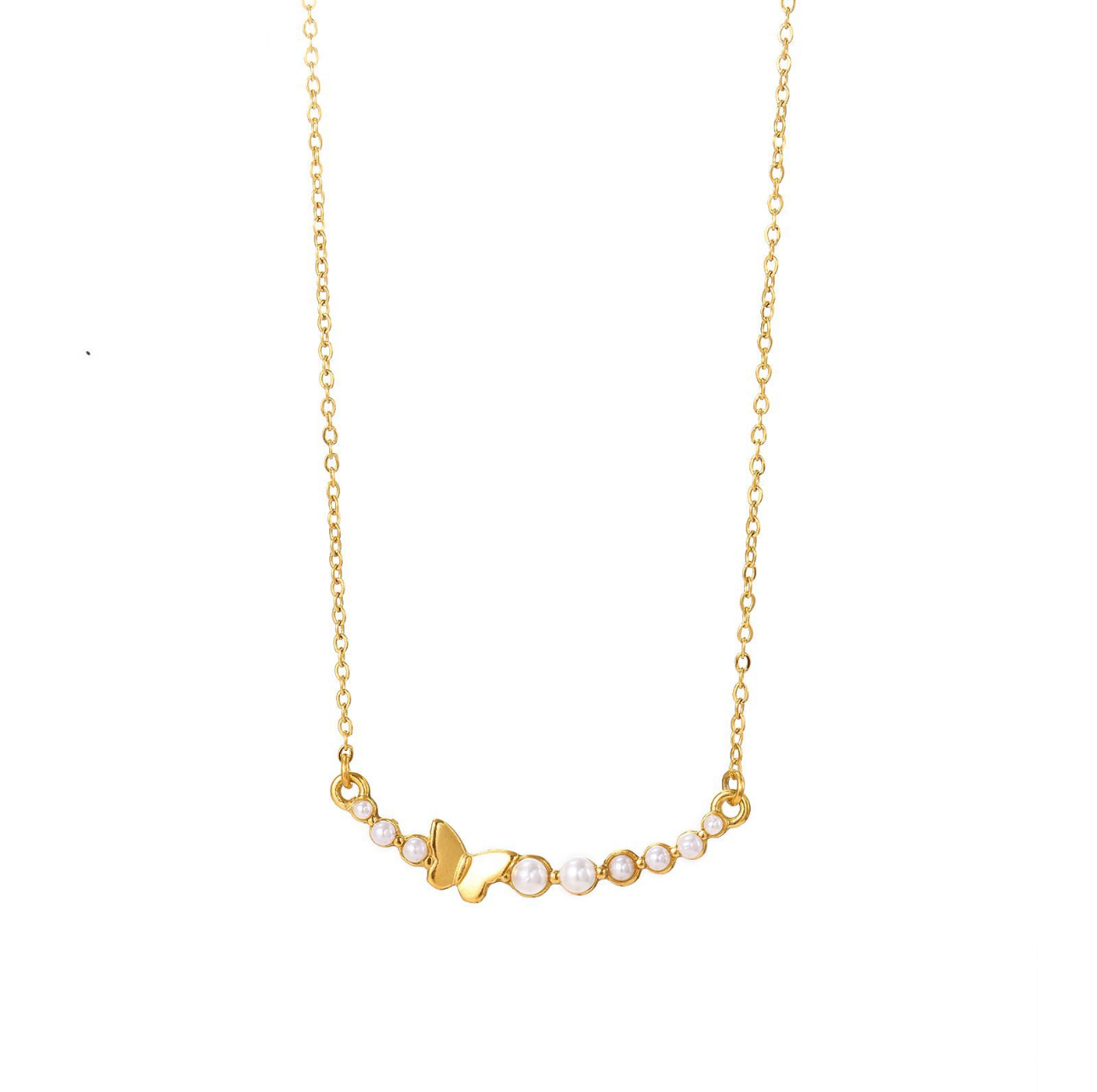 Questa raffinata collana, realizzata in resistente acciaio inossidabile, รจ disponibile anche nella versione placcata in oro 18K, aggiungendo un tocco di luminositร e raffinatezza. Il suo design elegante รจ caratterizzato da una delicata farfalla in acciaio, affiancata da perle disposte armoniosamente ai lati, in un equilibrio perfetto tra leggerezza e sofisticatezza. Grazie alla qualitร dei materiali, questa collana non si annerisce, รจ resistente all’acqua e ipoallergenica, garantendo comfort e durata nel tempo. La chiusura regolabile a moschettone permette di adattarne la lunghezza, offrendo versatilitร e praticitร .