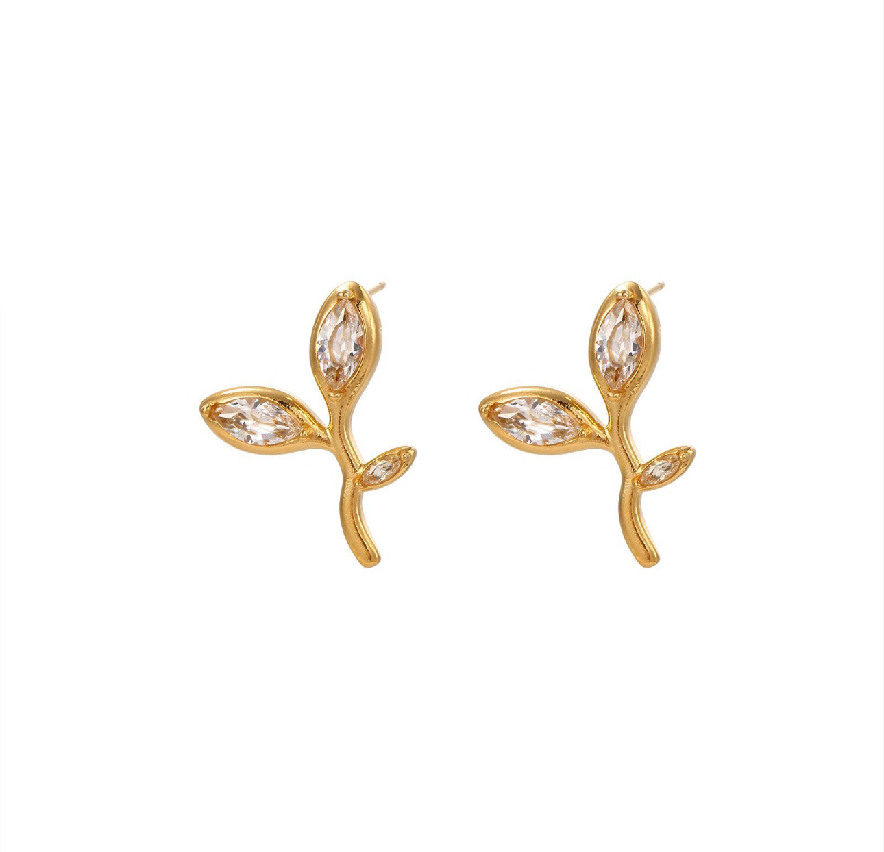 Questi eleganti orecchini sono realizzati in acciaio inossidabile di alta qualità, disponibili anche in una versione dorata placcata in oro 18K. Il design raffinato presenta un motivo a rametto con foglie, ciascuna adornata da scintillanti zirconi taglio marquise che aggiungono un tocco di brillantezza e sofisticazione. Grazie alla placcatura in oro 18K, la versione dorata mantiene una lucentezza duratura e un aspetto lussuoso. Il materiale utilizzato garantisce che gli orecchini non si anneriscano, siano resistenti all’acqua e ipoallergenici, rendendoli perfetti per un uso quotidiano senza preoccupazioni. La chiusura a perno assicura una vestibilità sicura e confortevole.
